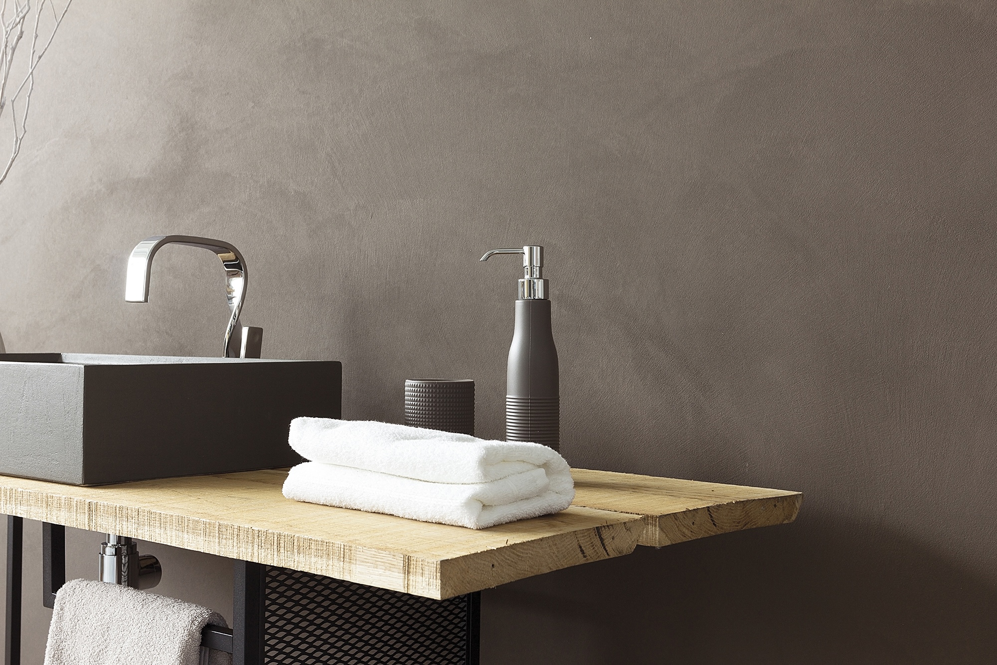 Malta, legno, cemento, argilla di Containers, per rivestire pareti e pavimenti: la materia creata dalla natura per superfici continue che esprimono forza in ogni dettaglio.