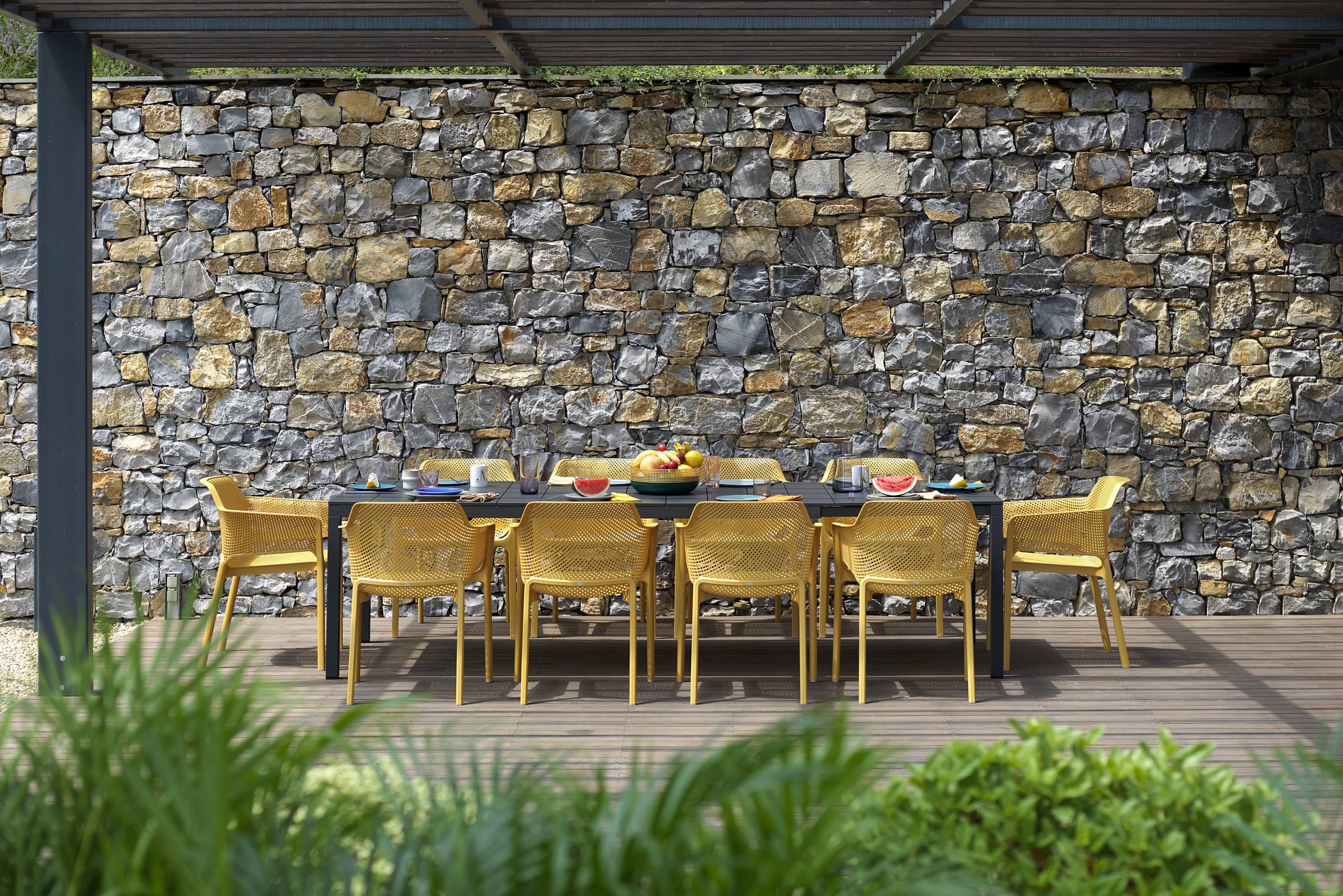 Nardi rappresenta oggi uno dei punti di riferimento assoluti per chi cerca un equilibrio tra funzionalità e design italiano. I tavoli come Rio e Piave offrono piani resistenti agli agenti atmosferici e sistemi estensibili che garantiscono ergonomia e leggerezza visiva, adattandosi sia a terrazze domestiche sia a grandi spazi contract. Le sedute come la Net Armchair o le poltrone Doga completano l’area pranzo con una presenza riconoscibile, impilabile e durevole, pensata per durare negli anni senza perdere carattere estetico. Nardi unisce la solidità dei materiali a una gamma completa che permette di coordinare tavoli e sedie in contesti residenziali e professionali, creando composizioni coerenti e armoniche.