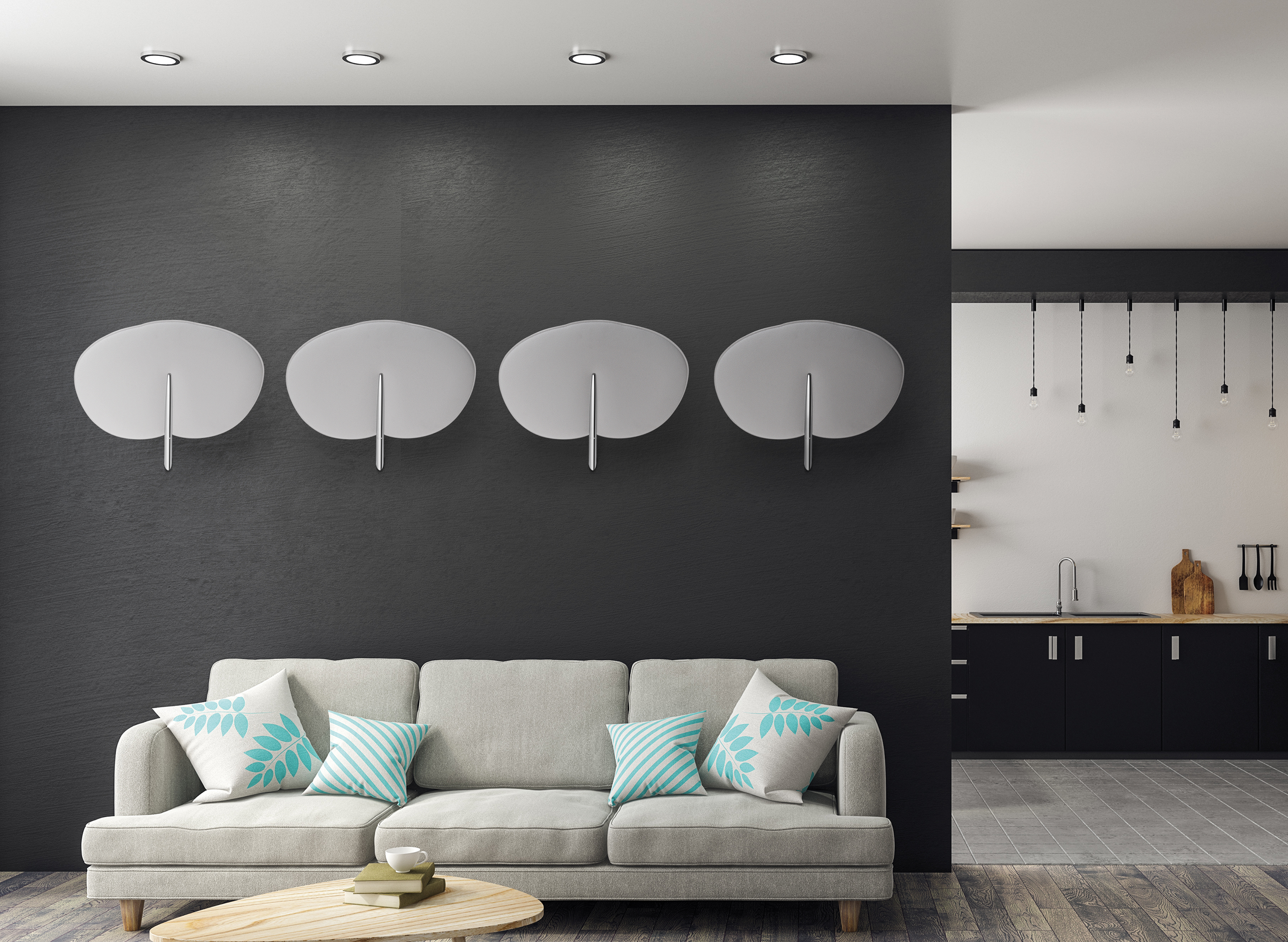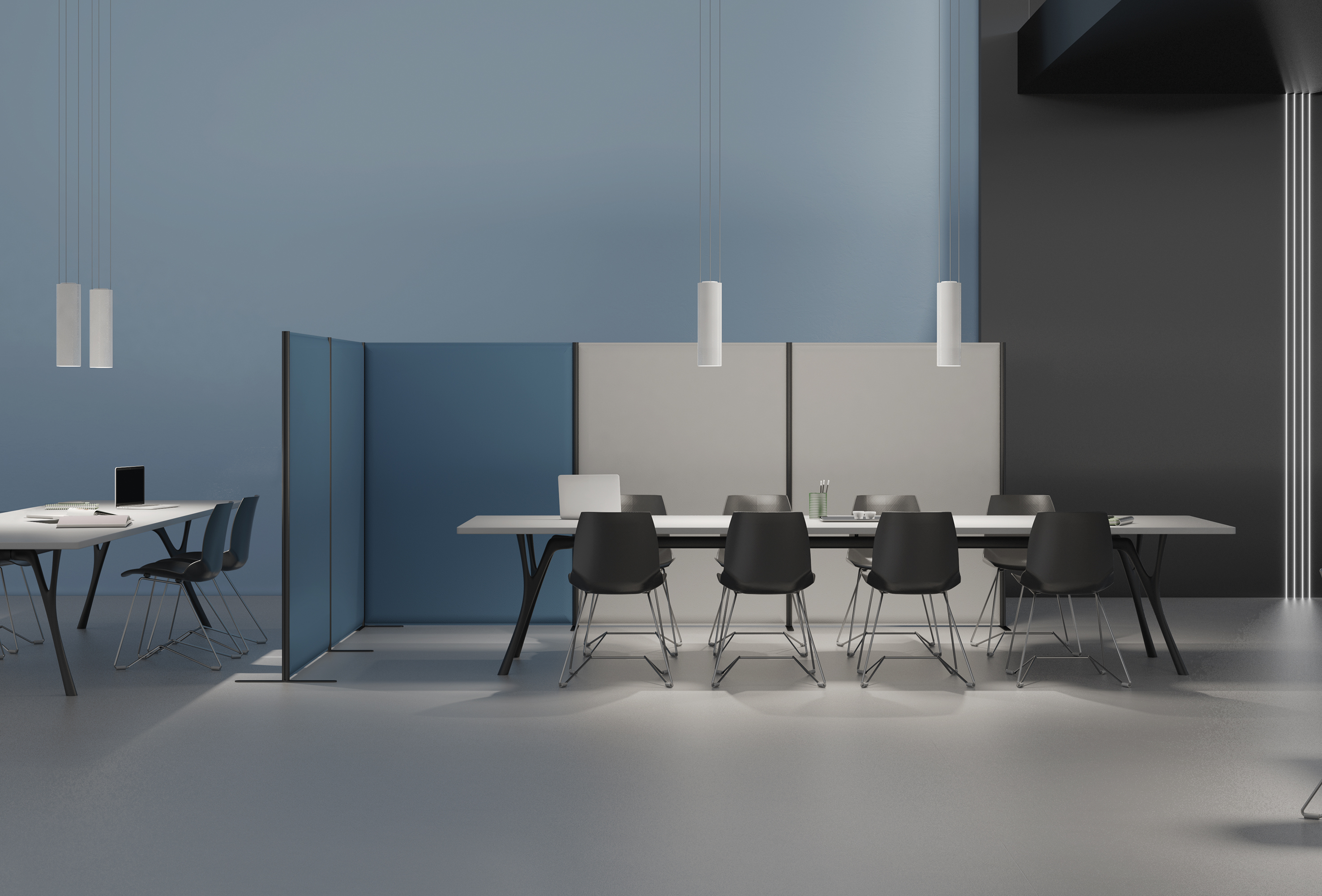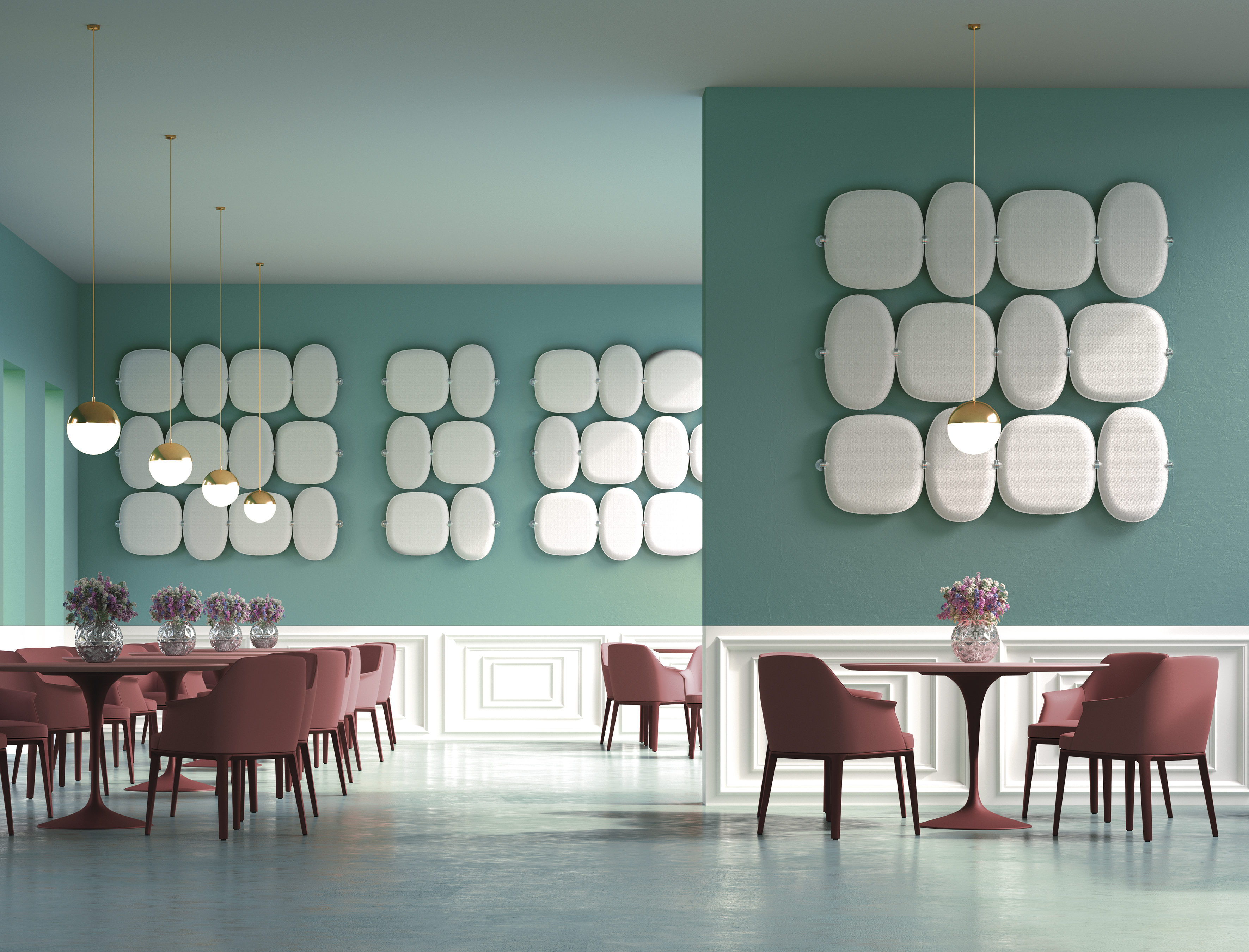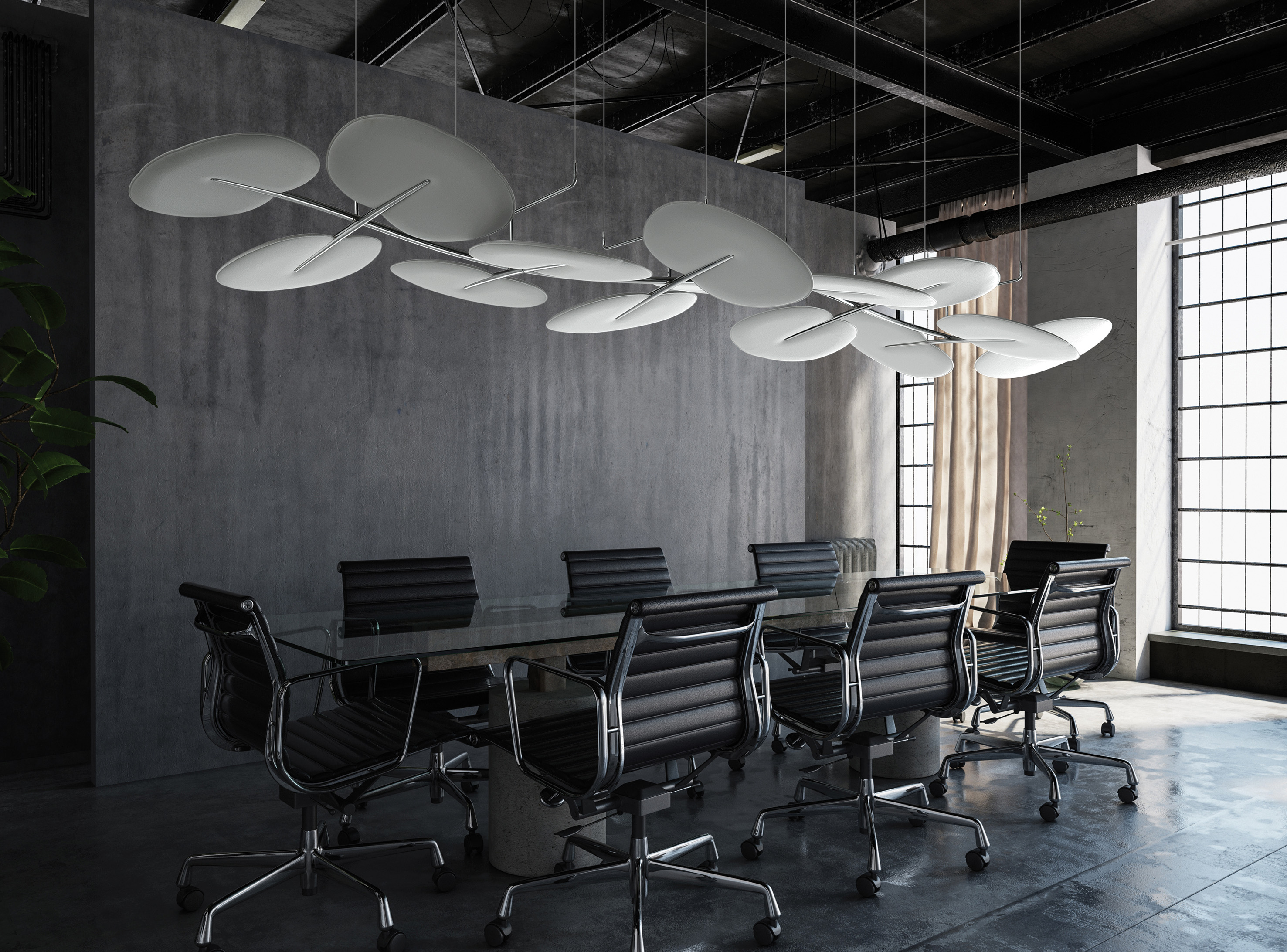 Superfici tessili, pannelli, arredi e soluzioni integrate dialogano con luce e materia per restituire equilibrio allo spazio.